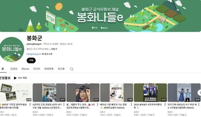 이 같은 노력 덕분에 봉화군 유튜브 채널의 구독자 수는 1년 새 1천 명 이상 증가했다.