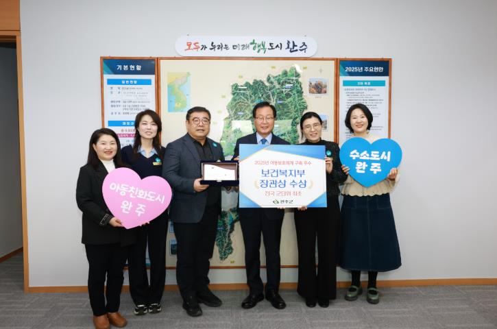 [뉴스앤톡] 완주군이 지난 1일 보건복지부가 주관한 ‘2025년 아동보호체계 구축 우수 지자체 평가’에서 전국 군 단위 최초로 우수기관으로 선정돼 보건복지부 장관상을 수상했다.