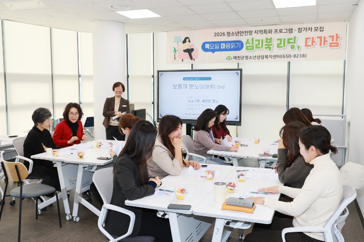 [뉴스앤톡] 예천군은 15일부터 매주 목요일, 학부모의 마음 건강 증진과 위기청소년 조기 발견을 위한 '목요일 마음읽기 – 심리북 리딩, 다가감(茶加感)' 프로그램을 운영한다고 밝혔다.