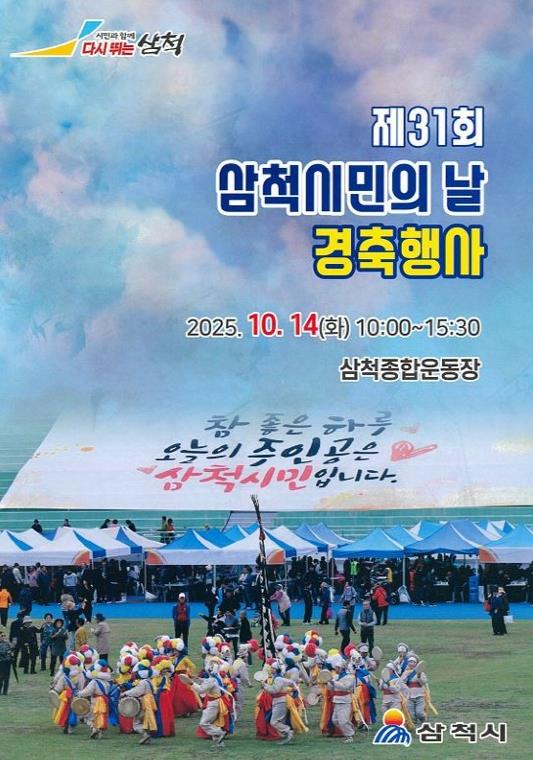 [뉴스앤톡] 삼척시민의 단결과 화합, 애향심과 자긍심을 고취하기 위한 제31회 삼척시민의 날 기념 경축 행사가 오는 10월 14일 오전 10시 삼척종합운동장에서 열린다.