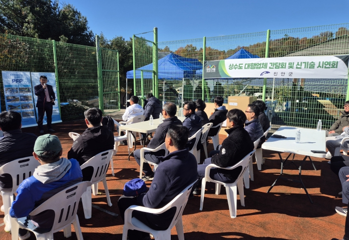 [뉴스앤톡] 진안군은 지난 11일 산약초 타운에서 관내 상하수도 대행업체 대표 및 실무자, 상하수도과 관계자 등 50여명이 참석한 가운데 ‘상하수도 대행업체 간담회 및 신기술 시연회’를 개최했다.