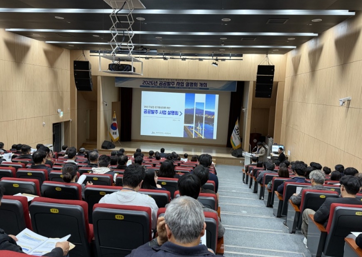 [뉴스앤톡] 서귀포시에서는 침체된 건설경기 활성화의 발판을 마련하고자 대한건설협회(전문포함) 회원 및 건설업 면허 등록업체 종사자 등 100여 명이 참석한 가운데 ‘'26년도 공공발주 사업 설명회’를 1월 16일 14시에 서귀포시청 별관 2층 문화강좌실에서 개최했다.