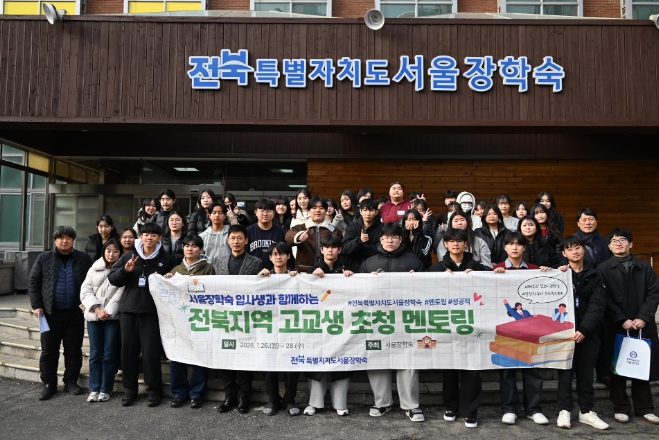 [뉴스앤톡] 전북특별자치도서울장학숙(관장 강길동)은 2026년 1월 26일부터 1월 28일까지 3일간 도내 14개 시․군 고교생 21명(1학년 남 8명, 여 13명)을 서울장학숙으로 초청, 입사생과 함께 숙박하며 '선후배와의 만남' 멘토링 행사를 진행한다.
