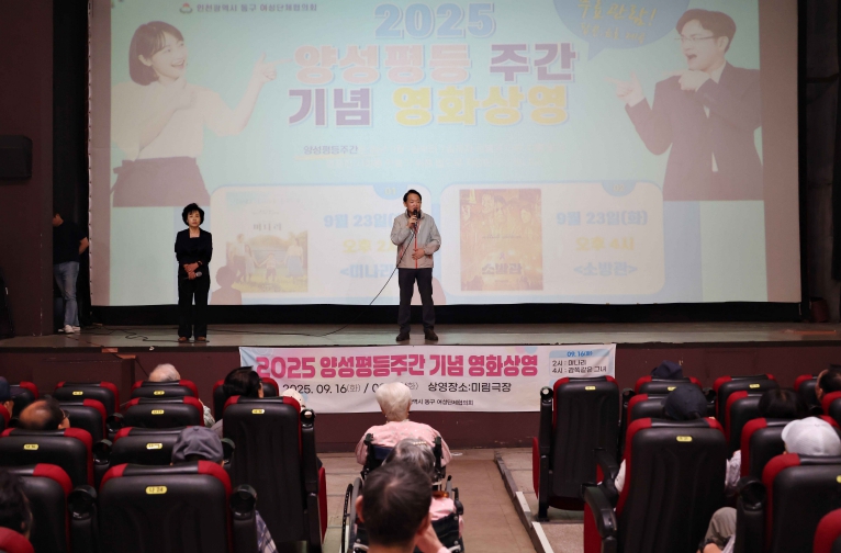 [뉴스앤톡] 인천 동구는 2025년 양성평등주간을 맞아 지난 16일, 23일 미림극장에서 ‘양성평등주간 기념’ 영화 상영을 성황리 마무리했다고 밝혔다.