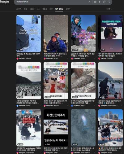 | ▲ 27일 포털 사이트에서 검색된 2026 화천산천어축제 관련 동영상. 개막 이후 18일 간 약 6,000여건이 생성됐다 |