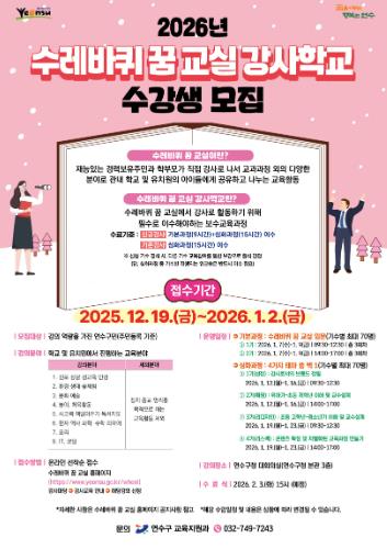신청은 2025년 12월 19일부터 2026년 1월 2일까지 수레바퀴 꿈 교실 홈페이지를 통해 무료로 가능하다.