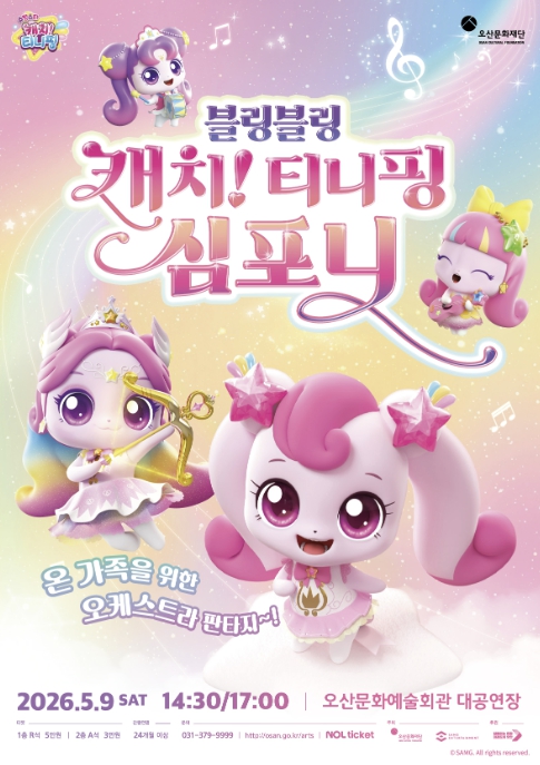 [뉴스앤톡] 오산문화재단은 어린이날을 맞아 온 가족이 함께 즐길 수 있는 오케스트라 공연 ‘블링블링 캐치! 티니핑 심포니’를 선보인다고 밝혔다. 이번 공연은 인기 애니메이션 ‘캐치! 티니핑’ 시리즈의 OST를 오케스트라 라이브로 감상할 수 있는 무대로, 어린이뿐 아니라 가족 단위 관람객들에게 특별한 문화 경험을 제공할 예정이다.