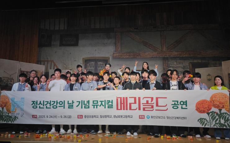 [뉴스앤톡] 함안군보건소는 2025년 정신건강의 날(10월 10일)을 기념해 지난 24일부터 26일까지 3일간 관내 중앙초등학교, 칠성중학교, 경남로봇고등학교 재학생과 교직원 등 250여 명을 대상으로 찾아가는 생명존중 뮤지컬 ‘메리골드’를 공연했다고 밝혔다.
