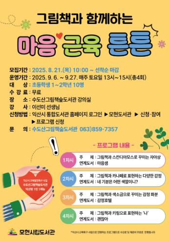 익산시 관계자는 "이번 프로그램이 아이들 내면의 힘과 정서적 안정감을 키우는 데 도움이 되길 바란다"며 "앞으로도 그림책 속에서 꿈과 재능을 키워가는 다양한 교육 프로그램을 이어가겠다"고 말했다.