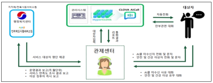 2023년부터 전통적인 복지행정의 한계를 보완하고, 인력·시간·비용의 효율성을 고려, AI 음성 기반 안부확인시스템(네이버 클로바 케어콜)을 운영하여 고립 위험군 대상 복지서비스 연계 및 모니터링을 지원하며 사회적 고립을 예방하고 있다.