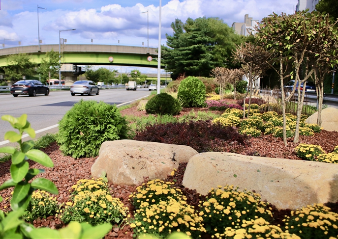 공단은 운전자들이 도심 속에서도 가을의 정취를 느낄 수 있도록, 서울 진입로와 교통 정체가 잦은 4개 구간에 국화, 황금사철, 삼색조팝 등 다채로운 가을 식물과 경관석을 활용해 ‘매력정원’을 조성했다.