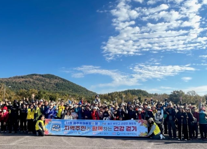 [뉴스앤톡] 서귀포시 동부보건소는 11월 음주폐해 예방의 달을 맞아 16일 표선면 대록산 일대에서 ‘지역주민과 함께하는 건강걷기’ 행사를 개최했다.