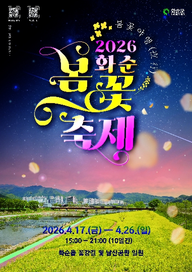 [뉴스앤톡] 전라남도 화순군은 봄을 맞아 지역 대표 축제인 ‘2026 화순 봄꽃 축제’를 오는 4월 17일부터 26일까지 10일간 화순 꽃강길과 남산공원 일원에서 개최한다고 밝혔다.