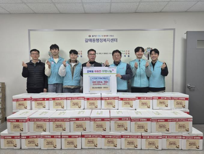 [뉴스앤톡] 구리시 갈매동은 지난 11일 행정복지센터에서 ‘사랑의 김장나눔 전달식’을 개최하고, 국민건강보험공단 구리지사가 김장 김치 5kg 50박스를 기탁받아 지역 내 의료취약계층 50가구에 전달하며 지역사회 의료․요양 통합돌봄 안전망 강화에 본격적으로 나섰다.