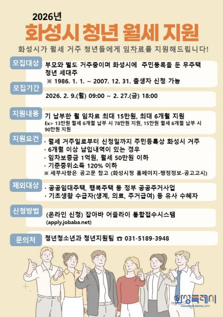| ▲ 2026년 화성특례시 청년 월세 지원 사업 안내 포스터 |