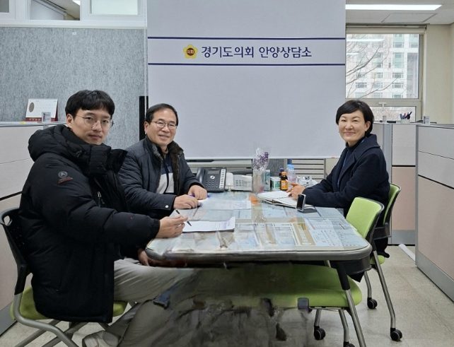 [뉴스앤톡] 경기도의회 이채명 의원(더불어민주당, 안양6)은 1월 30일 의회 안양상담소에서 안양시관계자와 동안구 후면 무인 교통단속 장비 설치에 대해 논의하는 자리를 가졌다.