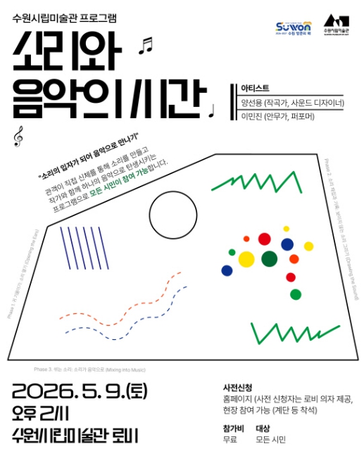 [뉴스앤톡] 경기도 수원시립미술관은 을 맞아 소리를 주제로 한 음악 프로그램 '소리와 음악의 시간'을 5월 9일 개최하며 참여자를 모집한다.