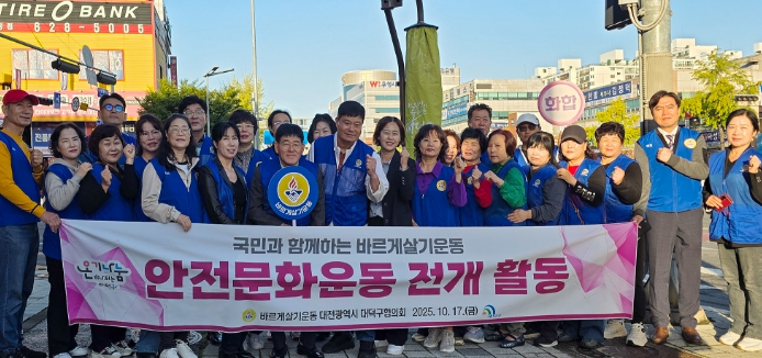 [뉴스앤톡] 대전 대덕구는 17일 바르게살기운동 대전대덕구협의회(회장 김광남, 이하 협의회)가 오정네거리 일원에서 바른생활 및 안전문화 캠페인을 전개했다고 밝혔다.