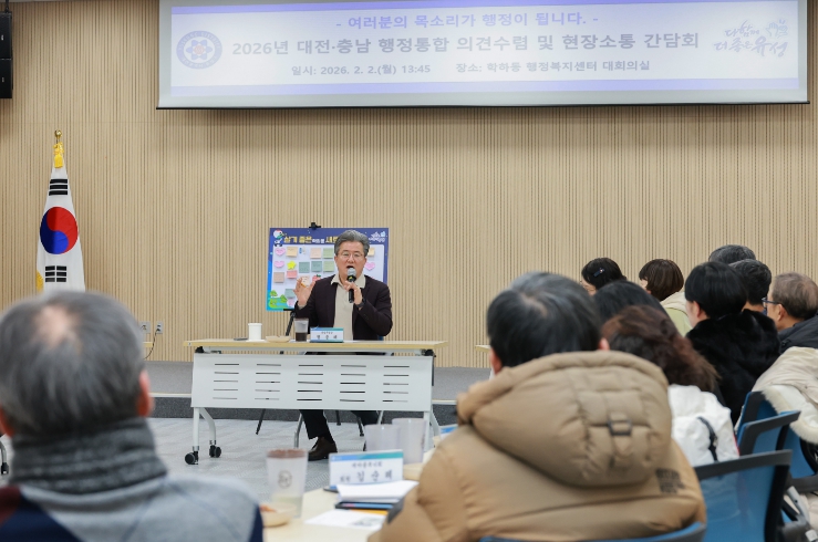 | ▲ 지난 2일 학하동 행정복지센터에서 진행된 ‘대전·충남 행정통합 의견 수렴 및 현장소통 간담회 |