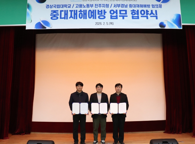 [뉴스앤톡] 경상국립대학교 라이즈(RISE) 사업단은 2월 5일 사천시 근로자종합복지관에서 서부경남 중대재해 예방 협의체 및 고용노동부 진주지청과 업무협약을 체결했다.