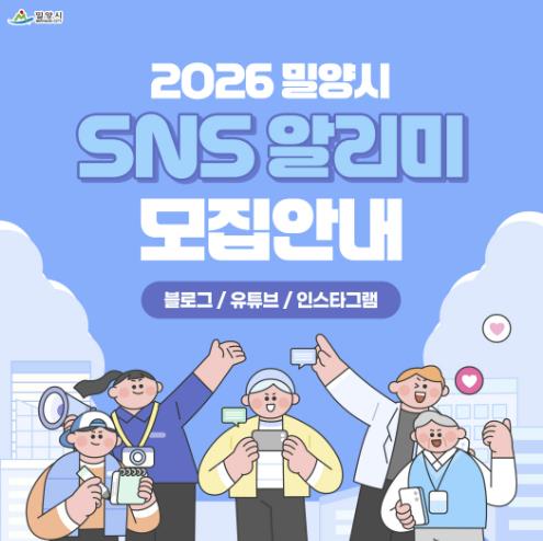 [뉴스앤톡] 경남 밀양시는 오는 12일 1일까지 시의 정책, 문화·관광, 축제·행사, 맛집 등 다양한 분야를 취재하고 홍보할 ‘2026년 사회관계망서비스(SNS) 알리미’를 모집한다고 24일 밝혔다.