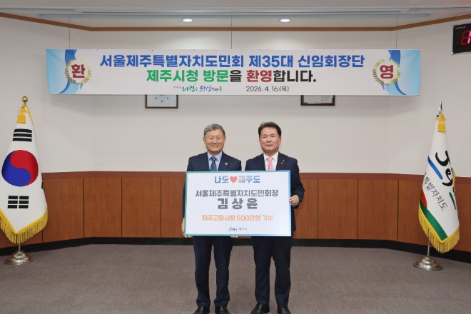 김완근 제주시장은 “고향에 대한 깊은 애정과 소중한 나눔에 진심으로 감사드린다”며, “앞으로도 지속적인 관심과 응원을 부탁드린다”고 화답했다.