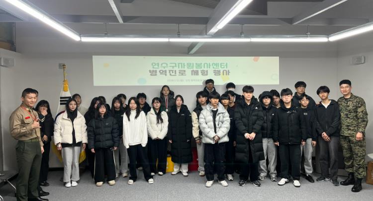 [뉴스앤톡] 연수구 자원봉사센터는 지난 1월 12일 겨울방학을 맞아 청소년 자원봉사자 30명을 대상으로 병역진로설계지원센터에서 병역직업체험 프로그램을 운영했다고 밝혔다.