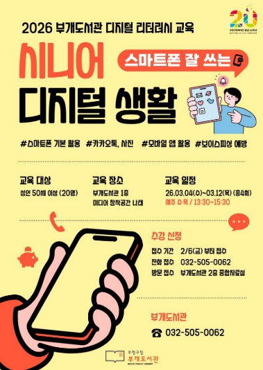모집 인원은 선착순 20명이며, 접수는 6일부터 시작된다. 참여를 희망하는 주민은 부개도서관을 방문하거나 전화로 신청하면 된다.