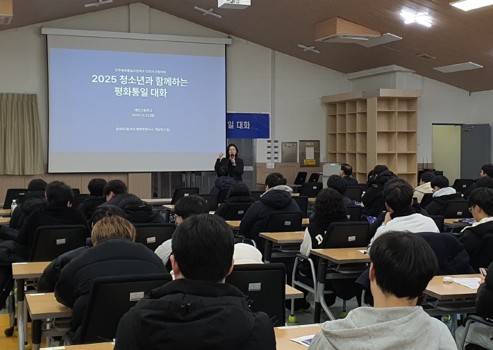 [뉴스앤톡] 민주평화통일자문회의 인천서구협의회(회장 유정학)는 지난 22일 대인고등학교 강당에서 대인고 3학년 학생 및 교사 등 130여 명이 참석한 가운데 ‘2025년 청소년과 함께하는 평화통일 대화’를 개최했다.