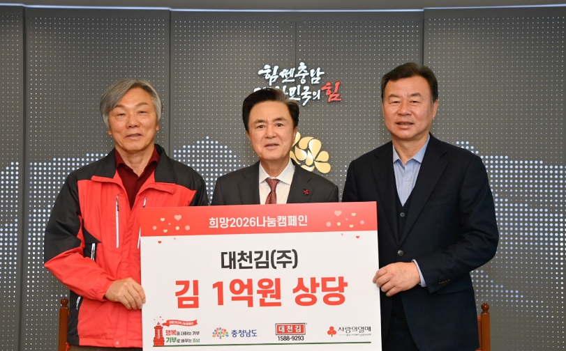 이날 도지사 외부접견실에서 열린 전달식에는 김태흠 지사를 비롯해 최민순 대천김 총괄대표, 성우종 충남사회복지공동모금회장 등이 참석해 나눔의 의미를 함께했다.