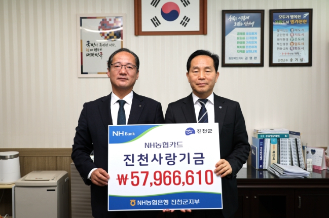 | ▲ NH농협은행 진천군지부, 제휴카드 적립기금 5,796만 원 전달 |