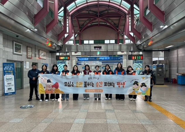 [뉴스앤톡] 서북소방서(서장 김종욱)는 남서울대학교 119청소년단 학생들은 25일 성환역과 26일 남서울대학교 일대에서 ‘불조심 강조의 달’ 캠페인 홍보 활동을 펼쳤다고 26일 밝혔다. 남서울대 청소년단 학생들은 시민들에게 홍보물품을 나눠주며 주택용 소방시설 설치를 당부하고, 화재 예방의 중요성을 알리는 활동을 진행했다.
