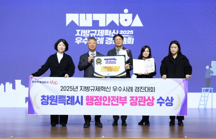 [뉴스앤톡] 창원특례시는 25일 세종컨벤션센터 국제회의장에서 열린 ‘2025년 지방규제혁신 우수사례 경진대회’에서 행정안전부 장관상(장려상)을 수상했다.