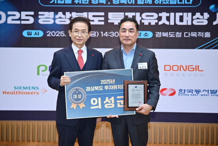 [뉴스앤톡] 의성군은 지난 19일 경북도청에서 열린 ‘2025년 경상북도 투자유치대상’ 시상식에서 투자유치 활성화 성과를 인정받아 3년 연속 대상을 수상했다고 밝혔다.