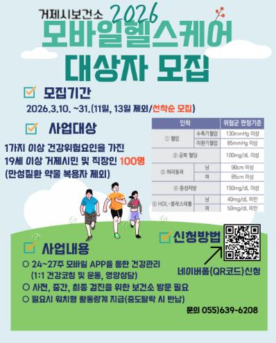 | ▲ 거제시보건소, 2026 모바일 헬스케어사업 참여자 모집 |