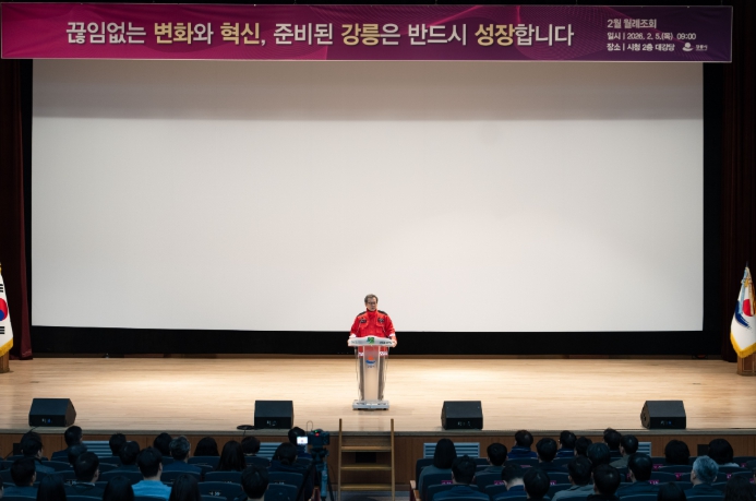 [뉴스앤톡] 강릉시는 5일 오전 9시 시청 2층 대강당에서 2월 월례조회를 개최해 직원 간 소통과 화합의 시간을 가졌다.