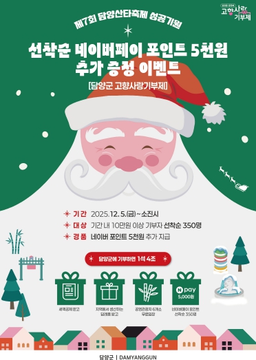 [뉴스앤톡] 담양군이 연말을 맞아 5일부터 ‘고향사랑기부제 네이버페이 포인트 증정 이벤트’를 진행한다.