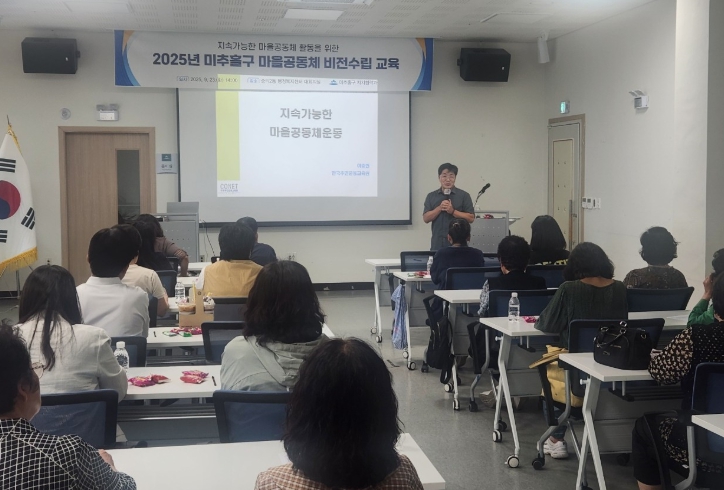 [뉴스앤톡] 인천 미추홀구는 지난 23일 마을공동체와 지역 주민을 대상으로 ‘2025년 지속 가능한 마을공동체 비전 수립 교육’을 개최했다.