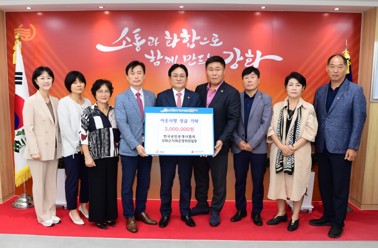 이번 기탁은 지역사회에 따뜻한 나눔 정신을 실천하고자 마련된 것으로, 성금은 강화군 내 소외계층을 지원하는 데 사용될 예정이다.