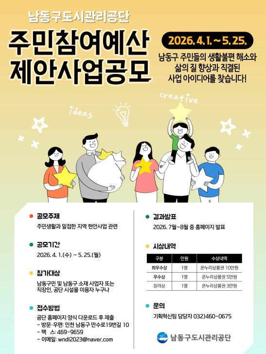 | ▲ 남동구도시관리공단, 2026년 주민참여예산 제안사업 공모 실시 |