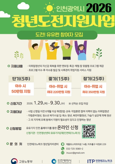 | ▲ 인천TP, ‘2026년 청년도전지원사업’ 참여자 모집 |