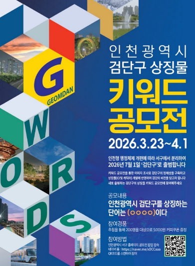 검단구 출범준비단 부서 관계자는 “이번 키워드 공모전은 주민이 생각하는 검단구의 이미지와 가치를 직접 담아내는 참여의 출발점”이라며, “검단구의 비전과 상징성을 효과적으로 표현할 수 있는 상징물을 만들기 위해 최선을 다하겠다”라고 말했다.