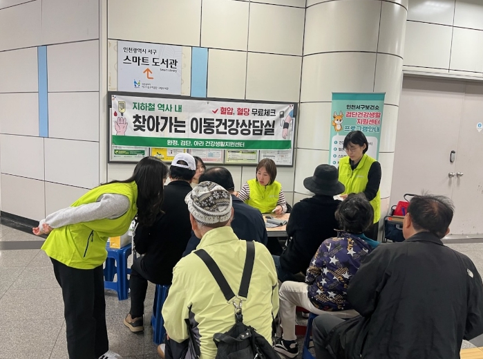 [뉴스앤톡] 인천 서구 검단권역(완정ˑ검단ˑ아라) 건강생활지원센터는 지난 17일 인천지하철 2호선 검단사거리역에서 지역 주민을 대상으로 찾아가는 이동건강삼담실은 운영했다고 밝혔다.