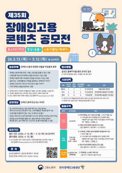 [뉴스앤톡] 고용노동부와 한국장애인고용공단이 '2026년 제35회 장애인고용 콘텐츠 공모전'을 개최한다.