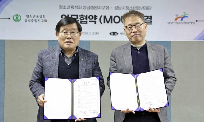 [뉴스앤톡] 성남시청소년청년재단은 2월 3일 청소년육성회 성남중원지구회와 지역 청소년의 건강한 성장과 복지 증진을 위한 업무협약을 체결했다.