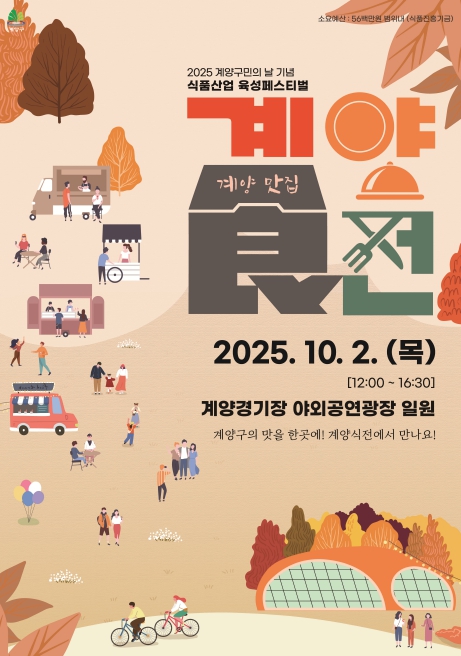 [뉴스앤톡] 인천광역시 계양구는 제31회 구민의 날을 맞아 행사를 오는 10월 2일 12시부터 계양경기장 야외공연광장에서 식품산업육성 페스티벌 ‘계양食(식)전’ 행사를 개최한다.