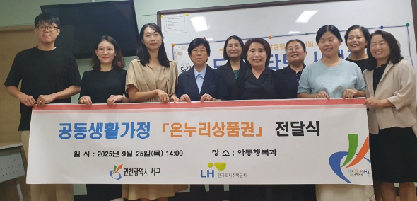[뉴스앤톡] 인천 서구는 LH청라영종사업단 보상판매팀에서 서구 관내 아동공동생활가정(아동복지시설) 7개소에 온누리상품권 700만 원을 기부했다고 밝혔다.