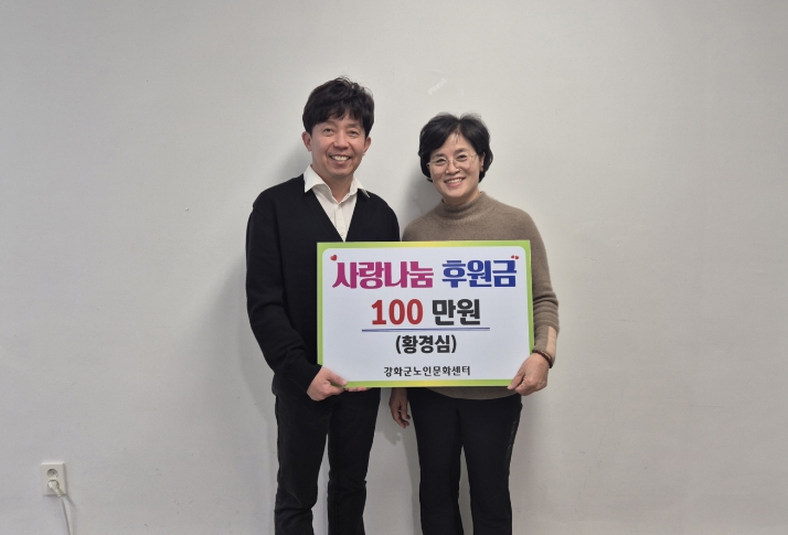 황경심님은 “강화군노인문화센터를 이용하며 많은 정과 도움을 받아왔다”며, “설 명절을 맞아 어르신들과 따뜻한 마음을 나누고 싶어 기부에 동참하게 됐다”고 소감을 전했다.