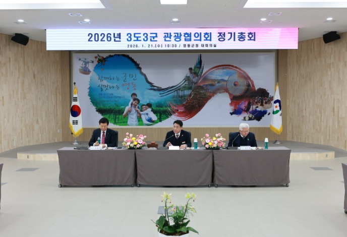[뉴스앤톡] 충북 영동군은 21일 영동군청 대회의실에서 2026년 3도3군 관광협의회 정기총회를 열어 지난해 성과를 공유하고 올해 공동 관광사업 추진 방향을 논의했다.