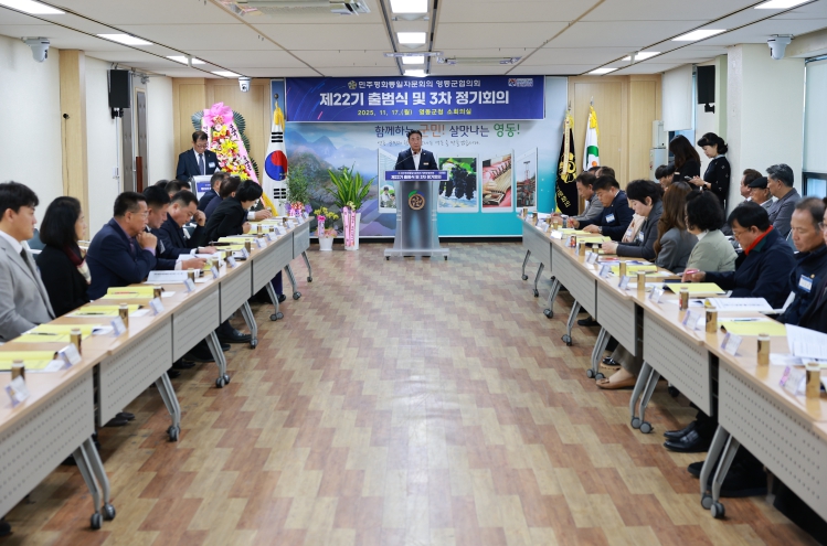 [뉴스앤톡] 헌법기관이자 대통령 직속의 통일자문기구인 민주평화통일자문회의 영동군협의회(협의회장 박희선)는 17일, 영동군청 소회의실에서 정영철 영동군수, 김병우 충북지역회의부의장, 자문위원 등 50여 명이 참석한 가운데 ‘제22기 출범식 및 2025년 3차 정기회의’(이하‘출범식’)을 개최했다.